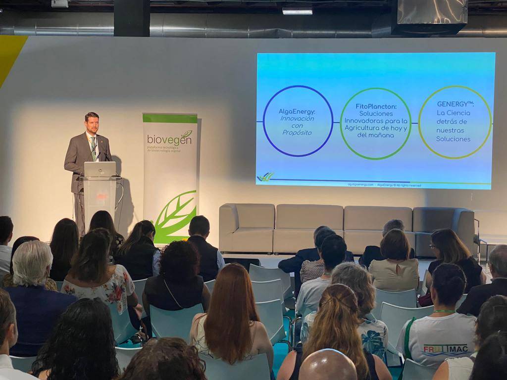 Por otro lado, Carlos Rodríguez-Villa, Director General de AlgaEnergy, participó en la jornada Biotech Attraction, organizada por BIOVEGEN bajo el título ‘Biotecnología e innovación para la agricultura del futuro’. La jornada, que contó con la colaboración del INIA-CSIC, abordó las aplicaciones de la biotecnología vegetal para resolver los desafíos de la agricultura actual y futura, repasó las oportunidades de financiación para el sector y mostró ejemplos de empresas de innovación agrobiotecnológica. AlgaEnergy fue invitada en este contexto a participar para mostrar cómo, a través de la innovación, sus soluciones biotecnológicas ayudan a los agricultores a hacer frente a algunos de los retos a los que se enfrentan en su día a día.