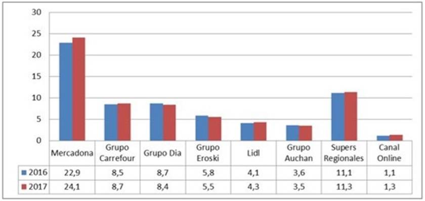 Figura 10 – Cuota de mercado de las diferentes cadenas de distribución (Fuente Kantar Worldpanel, datos 2017)