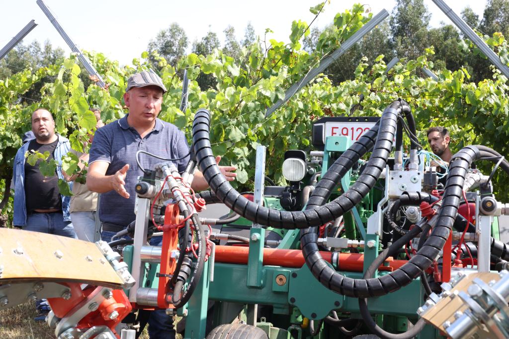 Durante la jornada, también se realizó una demostración del control de malas hierbas utilizando diferentes métodos mecánicos. Todos los asistentes, incluidos los miembros del Hub de viticultura liderado por FEUGA, tuvieron la oportunidad de conocer de cerca el funcionamiento de herramientas como Intercepas Radius SL+, Intercepas con ganchos giratorios y el Intercepas escardador de dedos. Estas soluciones ofrecen métodos efectivos y sostenibles para el control de la vegetación dañina en los viñedos, evitando la necesidad de recurrir a herbicidas.