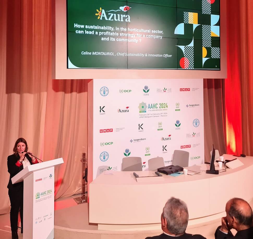 Celine Montauriol, responsable de «innovación» en Azura, explicó en el #AAHC2024 los objetivos empresariales de esta marca hortofrutícola hacia su transición ecológica denominada «Net Zero». En Azura definen 5 atributos para sus clientes: alimentos saludables, variedades con sabor, interés por las especialidades snacking, desarrollos sostenibles en su producción hortícola y precios accesibles.