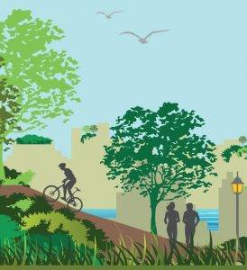 Algunos ejemplos de soluciones naturales pueden ser las cubiertas o fachadas vegetales, así como otros elementos naturales, infraestructuras verdes y azules en el espacio público, conectadas con parques y áreas naturales de los municipios.