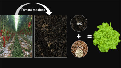 En un estudio actual , se investigó en macetas los residuos de tomate como fertilizante y enmienda del suelo para la producción de lechuga (Lactuca sativa ‘Speedway’). Por lo tanto, se sustituyó el fertilizante orgánico convencional al 100 % o al 50 %. Además, se realizaron controles de con y sin fertilizante convencionales.