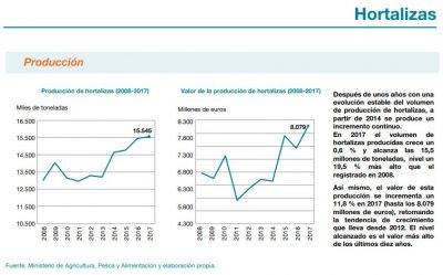 Diapositivas publicadas en el Observatorio agroalimentario de Cajamar con información del MAPYA, referentes a la industria hortícola española