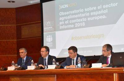 Por su parte, el economista y catedrático de Análisis Económico de la Universitat de València, Joaquín Maudos, desgranó los datos más destacados del informe y señaló que “el sector agroalimentario español prosigue su crecimiento por cuarto año consecutivo en la generación de valor añadido”. En 2018 supuso el 9,2 % del total de la economía española, ascendiendo el VAB del sector agroalimentario ampliado a 100.742 millones de euros, incluyendo toda la cadena: sector primario, transformación y comercialización, lo que supone medio punto más que el año anterior. España es la quinta economía del sector agroalimentario de la Unión Europea, aportando el 11,4 % del VAB del sector agroalimentario europeo en 2017, un peso por encima del 7,7 % de la economía española en el total de la UE-28, lo que deja patente la mayor especialización de España en este sector.