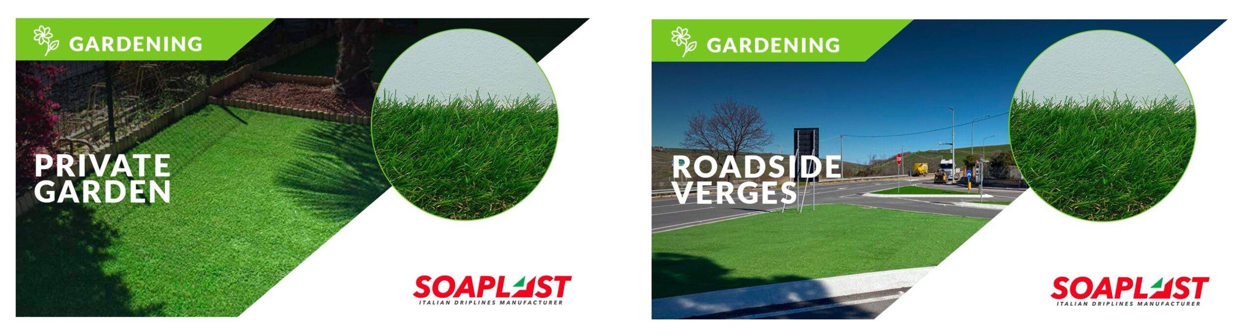 Por ello, con la idea de ofrecer un excelente producto y facilitar el mayor aprovechamiento de nuestro tiempo en esta época, la empresa italiana Soaplast, líderes en soluciones de riego por goteo de precisión para agricultura y jardinería, presenta SO-GRASS, la línea de césped perenne capaz de embellecer nuestros jardines o espacios más preciados.